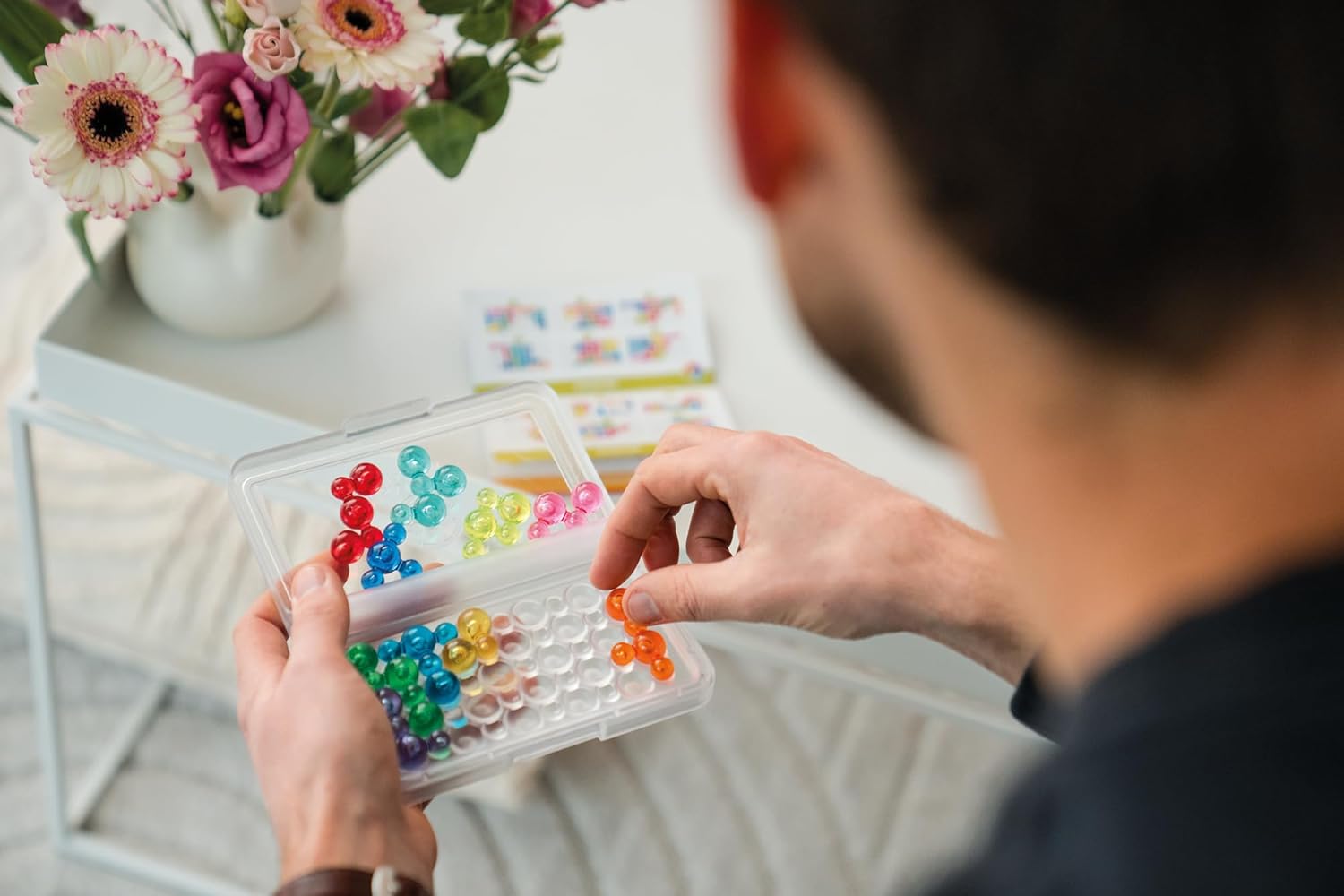 IQ Bubbles from SmartGames is a compact solo logic puzzle that packs serious thinking power into a travel-friendly case. Place the colorful bubble pieces onto the board and solve 120 challenges that grow from simple starters to mind-bending brain teasers.
