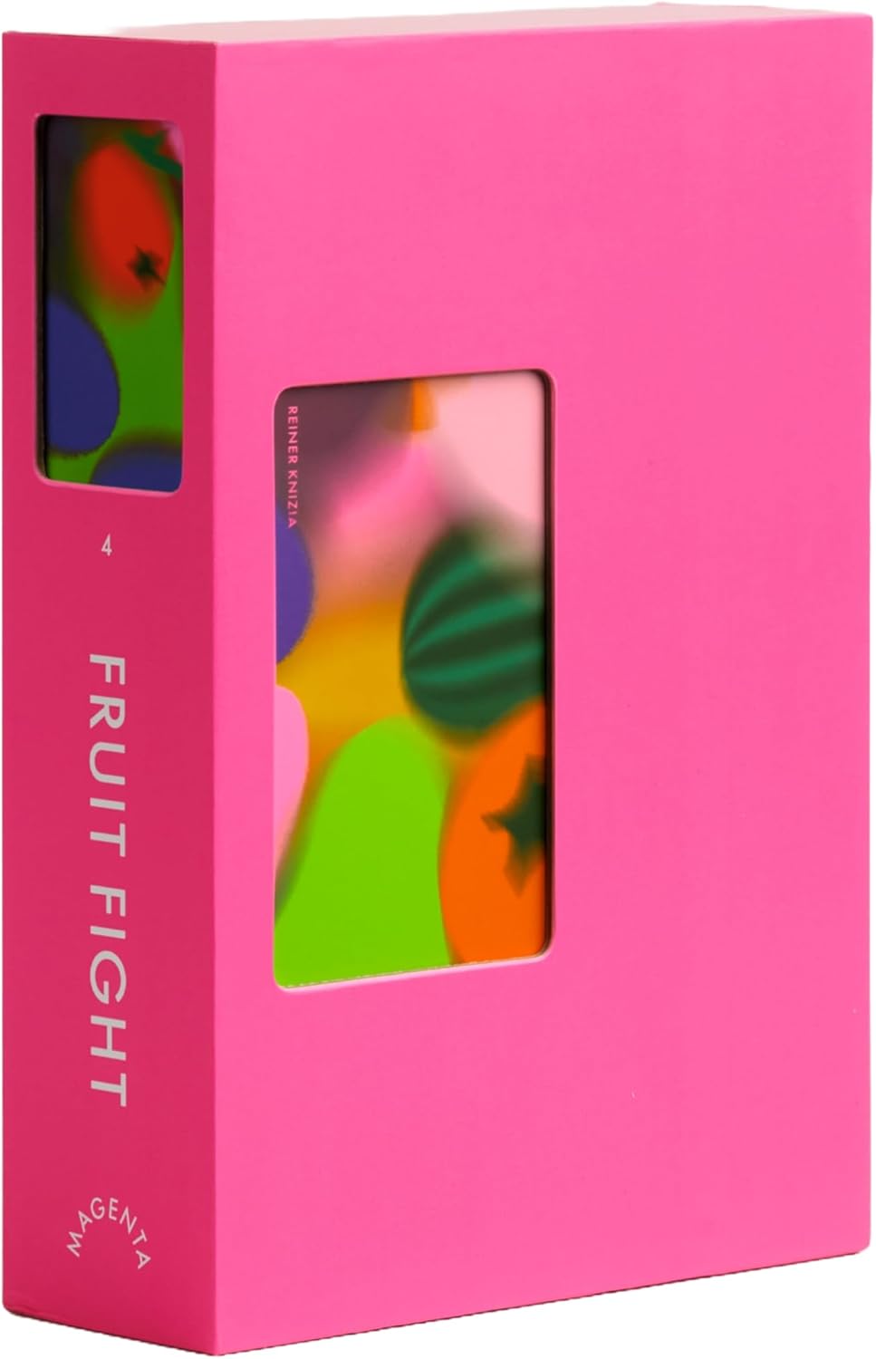 In Magenta: Fruit Fight, players draw fruit cards to build up juicy points—then decide whether to stop and score or keep drawing for an even bigger haul. But here’s the delicious twist: if you draw fruit that matches what another player is about to score, you can steal it all! Just be careful… draw a fruit you already have and you bust, losing everything you were about to bank.
