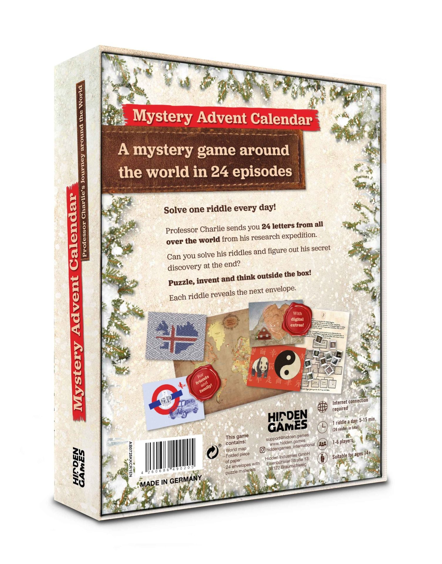 Professor Charlie’s Journey Around the World is a thrilling mystery advent calendar from Hidden Games that transforms the countdown to Christmas into a globe-trotting detective adventure. Behind each of the 24 doors lies a new puzzle, clue, or piece of evidence that slowly reveals an exciting international case.